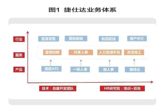 具体来看,捷仕达的具体服务将聚焦于蓝领招聘、共享人事、人力资源外包、灵活用工等四个板块(详见图1)。