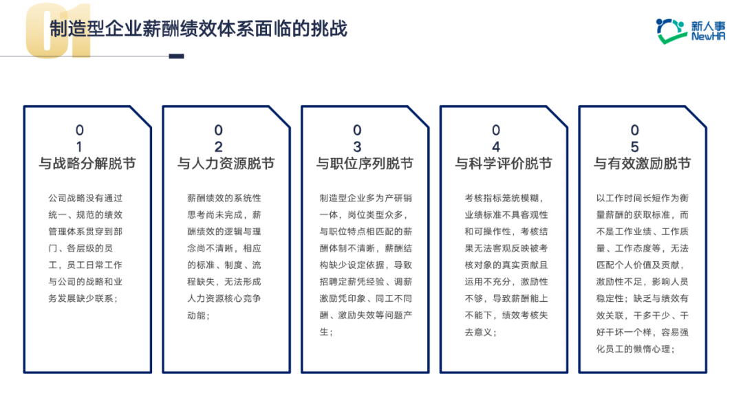 马老师一开始便提出了制造型企业薪酬绩效体系面临的五大挑战: