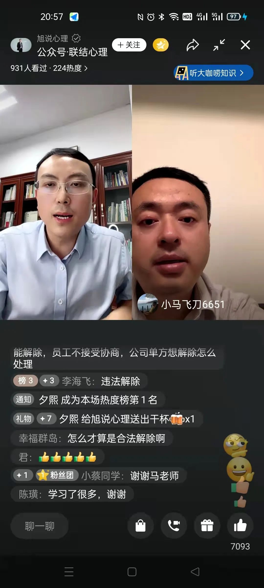 在线直播900多学员一个又一个地提出各种企业用工上的法律问题,学员们纷纷表示马老师这一堂真是一场“及时雨”,解决了他们在企业面临的很多问题。