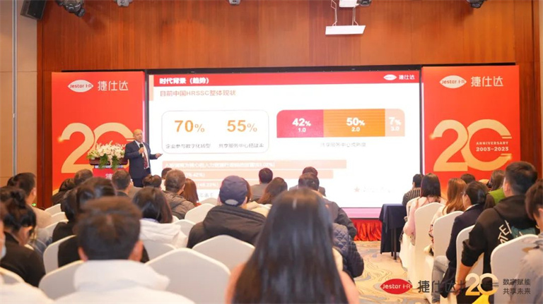 战略引航,乘风破浪。刘光云董事长作《捷仕达HRSSC数字化之路》主题演讲,从时代背景、数字历程及HRSSC建设进行全面剖析,集团生产将构建“科技x服务x咨询”的商业模式,打造一流的人力资源共享服务中心(HRSSC),实现客户在线、服务在线、组织在线,持续提升产品核心竞争力,不断为企业和劳动者带来超值的人事共享服务。