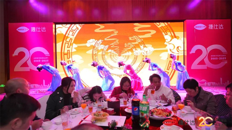 在耀眼的灯光下,捷仕达集团员工代表自编自导的节目精彩呈现,为现场嘉宾奉献了一场美轮美奂的视听盛宴。