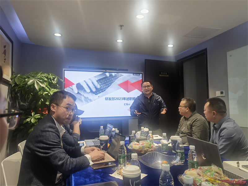 会上,各业务板块负责人围绕就2023年度重点工作完成情况、工作中存在的不足和2024年部门规划等方面依次进行现场述职,并分别指定三位考评主体,为其工作成果及履职能力进行同行评议。
